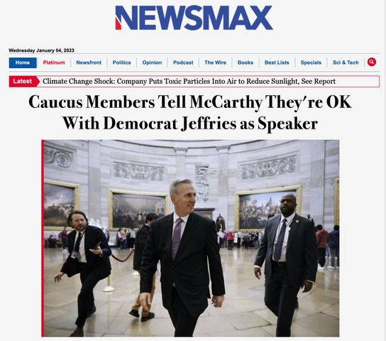 Fox News’ rival conservative channel, Newsmax, has been no less supportive of McCarthy’s bid. On Wednesday, the network’s website portrayed the conservative rebels as traitors willing to throw House control to the Democrats while spotlighting Trump’s endorsement of McCarthy. Even Breitbart’s coverage of the fight has been relatively neutral. On the radio, right-wing host Mark Levin has denounced the hard-liners as “saboteurs.”